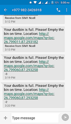 The message contains the link of the google map and the link provides the exact location of where the dustbin is filled. The location of the filled garbage container can be seen via a Google map that gives a graphical view of the garbage bins and highlights the garbage bin with a marker and further the process is repeated.